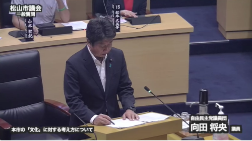 文化として考えた場合、このような問題を抱えているのは、音楽だけではないと思います。文化活動を披露するには、会場費や設営費を含め、決して安くはない費用が発生します。文化活動を披露するのは、民間の有志の団体であり、おのおのが愛している文化を発展させたいと願う皆さんが、出席者から参加費を集めるなど、様々な形で資金を調達し、ボランティアさんの応援ももらいながら運営をしています。本来であれば、文化を育成する役割は、民間ではなく、行政側にあるのではと思っています。行政が積極的に関わるべき育成事業を、民間が代わりに実践してくださっている、そのような考え方が本来行政側には必要なのではと思っています。自治体によっては、このような感謝の発想から、毎年度のコンクールの費用の一部を行政側が負担する、そんな自治体もあるのだそうです。また、他の自治体では、文化の育成に対する関心が高く、例えば特別な賞を受けた受賞者に対し、市長がじきじきに表彰し、その賞状や盾を手渡す、そんな事例もあります。受賞者の立場に立って考えると、これは非常に栄誉なことであり、自分が取り組んでいることに対し、これからもっと研さんを積んで精進しよう、そんな気持ちを抱くきっかけにもなる取組だと思います。お伺いします。文化芸術分野のコンクールなどで優秀な成績を収めた方に対し、市長が直接表彰し、その栄誉をたたえるといった行動が、ひいては松山市全体の一つ一つの文化水準を向上させ、松山市を魅力ある自治体とするきっかけにもなると思うのですが、どのように感じられるでしょうか、市長のお考えをお聞かせください。